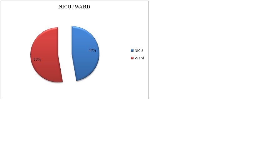 From 55 referred cases 53% belonged to ward and 47% belonged to NICU.